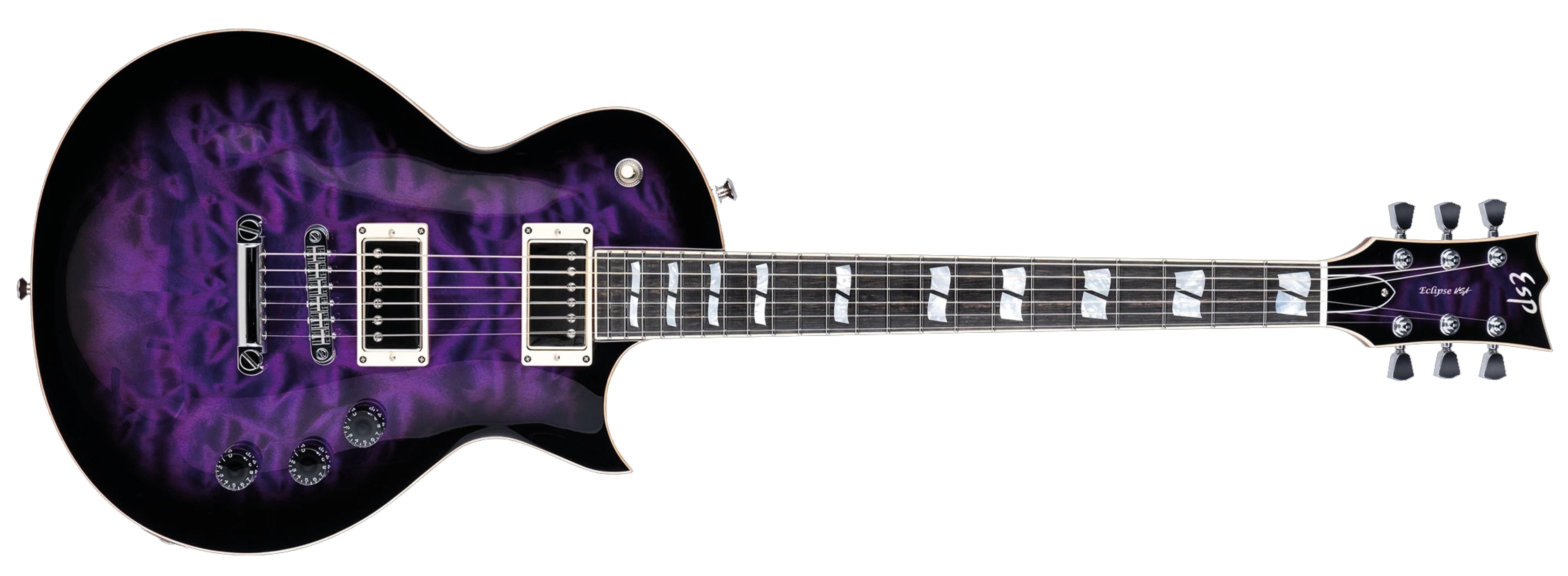 Lancée au milieu des années 90, l’Eclipse revisite la Les Paul avec une approche plus moderne : corps plus fin, accès aux aigus facilité, manche plus rapide, et électronique active en option. Elle séduit autant les métalleux que les rockeurs alternatifs. James Hetfield l’utilise régulièrement en studio, et elle devient un best-seller chez ESP comme chez LTD. Sa silhouette familière mais affûtée incarne parfaitement l’ADN de la marque.