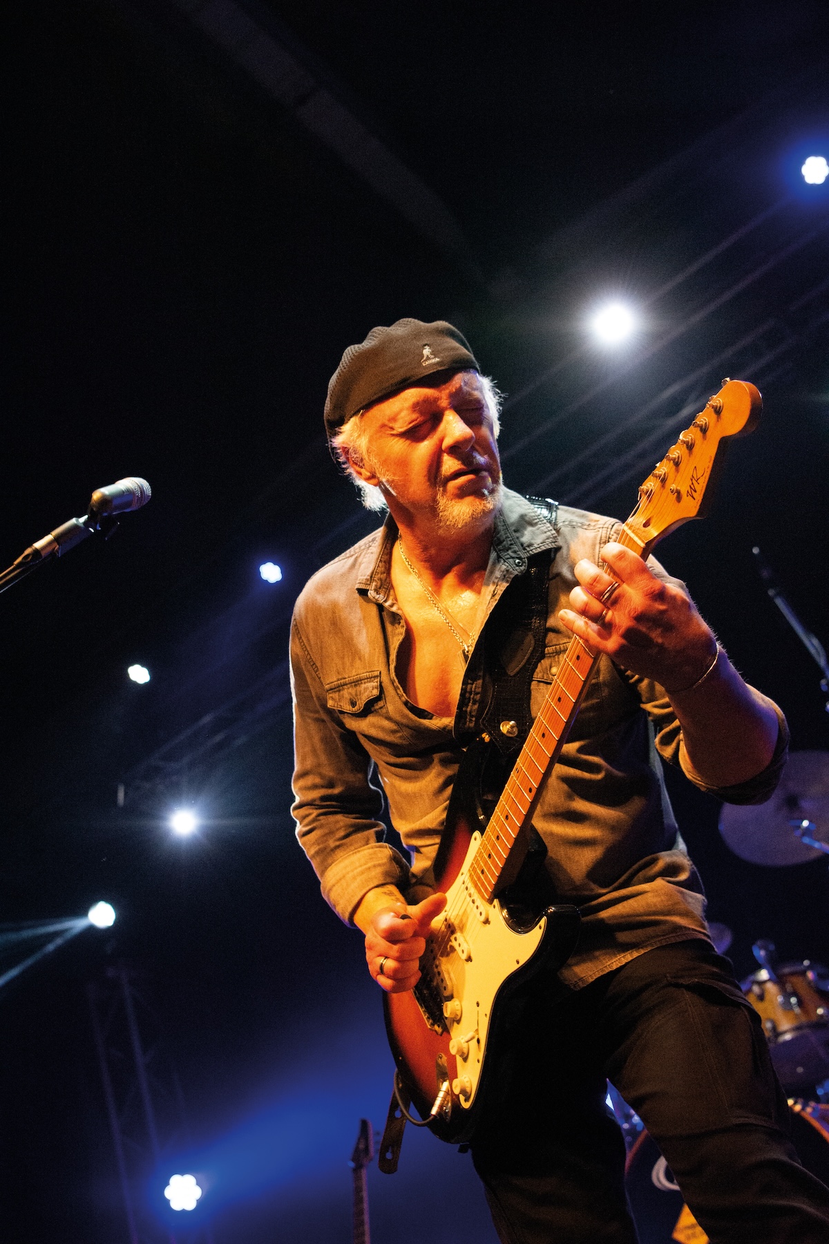 Fred Chapellier : Alors moi, je suis totalement à la rue (rires). Le matos, je n’y connais rien. Mais vraiment rien du tout. J’ai trouvé des pédales que j’aimais bien il y a vingt-cinq ans, et j’ai toujours les mêmes. C’est vraiment le cas. Principalement une Bluesbreaker Marshall d’origine et une Boss OD-3. J’en ai même deux. Voilà. Que je joue avec Guitar Night Project ou avec mon groupe, j’utilise exactement le même matériel. En gros, trois pédales. Je mets juste plus ou moins de saturation en fonction du contexte. Avec Guitar Night Project, par exemple, quand je joue Mindscape de Patrick Rondat, je mets forcément plus de gain, mais ça marche. De toute façon, j’ai l’impression que quoi que je prenne, ça sonnera toujours pareil. Donc je reste moi-même, avec le même matos. Côté guitares, c’était évident pour moi de jouer sur Fender Stratocaster. C’est une guitare polyvalente, qui colle parfaitement à ce style. On sait pourquoi… Ritchie Blackmore et compagnie. C’est une guitare que j’adore, et qui fonctionne sur la majorité des morceaux. J’ai plusieurs Fender, mais pour Guitar Night Project, j’utilise une Strat fabriquée par William Raynaud, le luthier derrière WR Guitars, qui a longtemps travaillé pour James Trussart et qui s’est installé à Los Angeles. Pour les amplis, j’utilise des Scribaux, faits main en France, à Reims. Et c’est tout. Enfin, je prends aussi une Gibson Les Paul sur Gary’s Gone, parce que ce morceau demande un peu plus de coffre et de saturation. Mais sinon, voilà… moi, c’est tout.